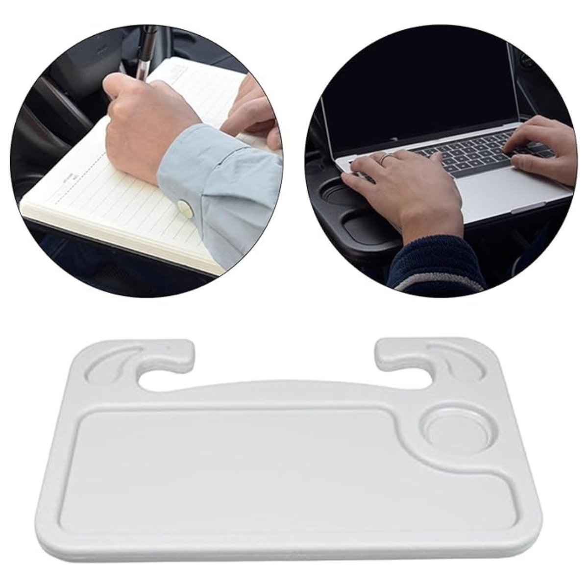 ¿Cansado de comer en el auto de forma incómoda o de trabajar en espacios reducidos durante tus viajes? Nuestra Bandeja Multifuncional Volante Blanco es la solución perfecta. Diseñada para adaptarse a la mayoría de los vehículos, esta bandeja te brinda un espacio de trabajo y comedor práctico, convirtiendo tu auto en una oficina móvil, como en un espacio de relax durante tus viajes.